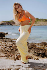 Unsere Palazzo Hose für sommerliche Tage - angenehmes Material, lockerer Fit mit Gummizug am Bund. Olivia ist 1,67m und trägt Größe XS.- 58,80€