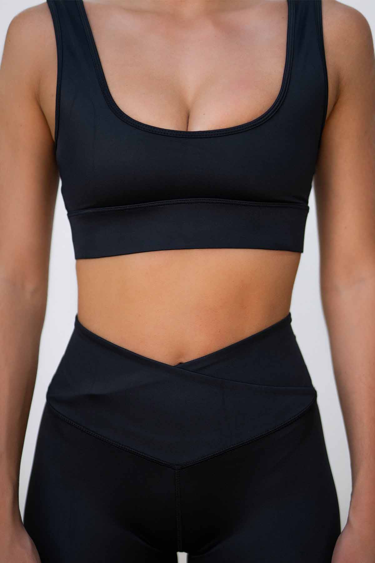 Sport Top ohne Padding mit breiten Trägern, elastischem Bund und Cut-out Detail am Rücken. Hergestellt aus recyceltem Ozean Plastik.