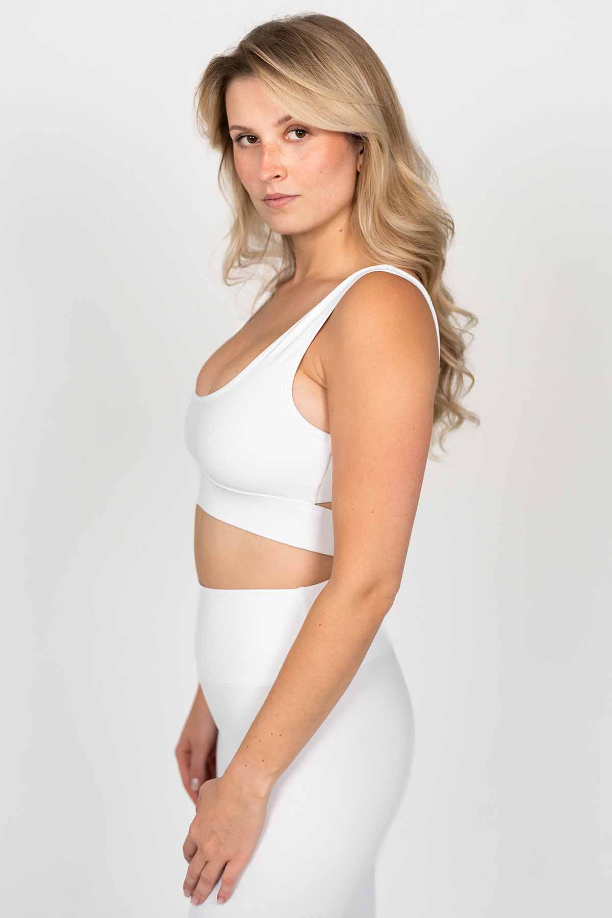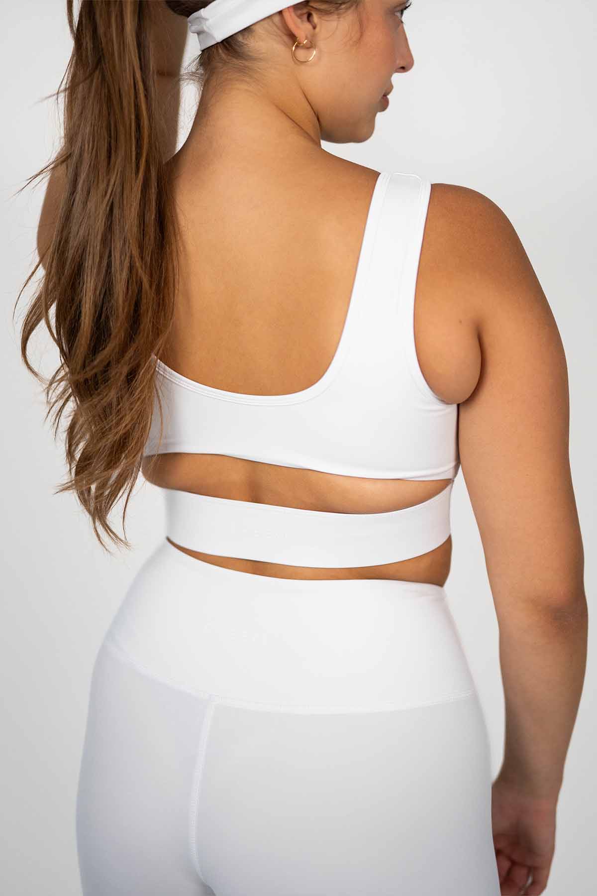 Sport Top ohne Padding mit breiten Trägern, elastischem Bund und Cut-out Detail am Rücken. Hergestellt aus recyceltem Ozean Plastik.