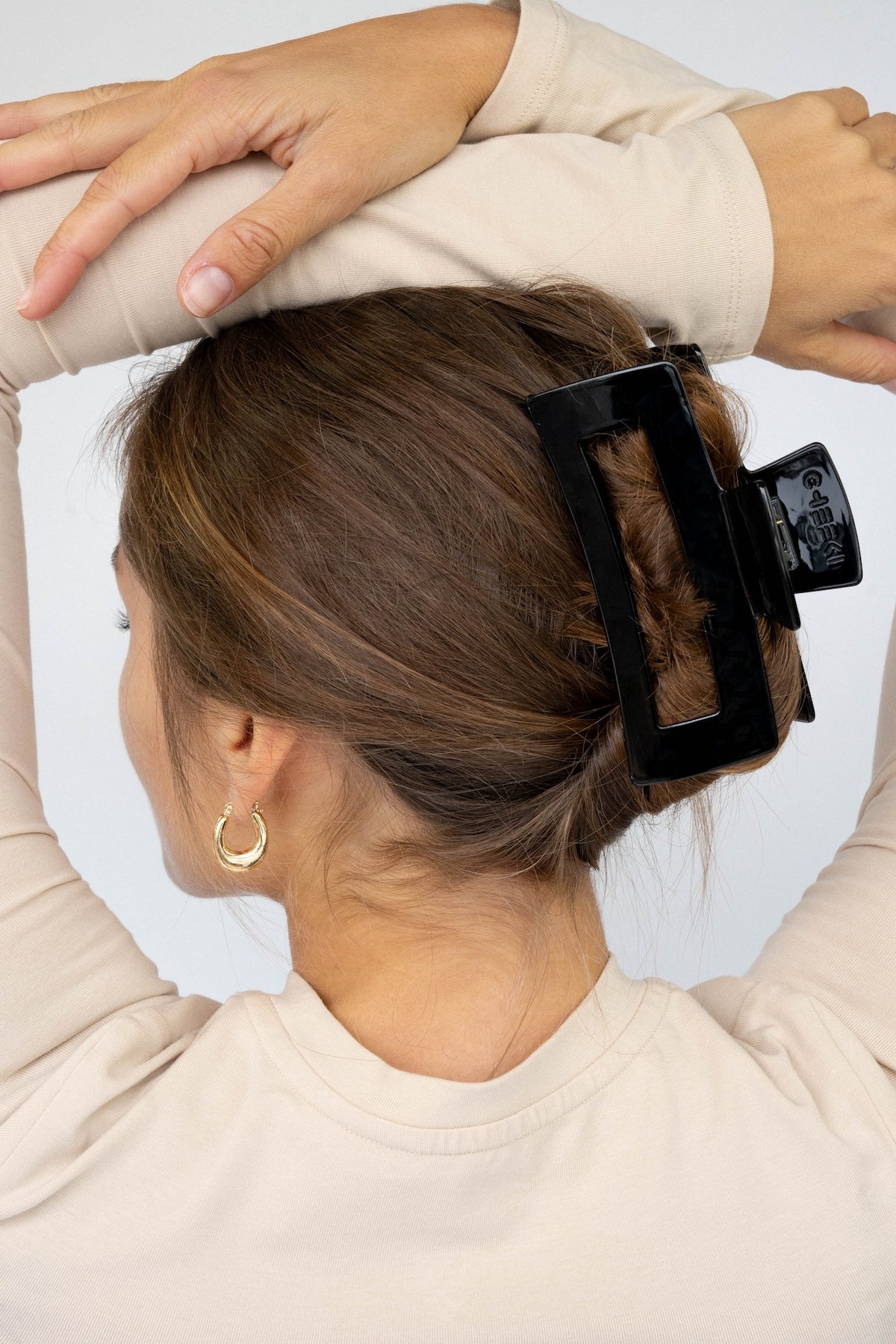 Diese Haarklammer ist dein absolutes Must-Have für jeden Tag. Das eckige, minimalistische Design macht diese Haarspange zu dem perfekten Allrounder. Vom Low-Bun bis zur Hochsteckfrisur, rundet diese Haarklammer deinen Look mit einem edlen Detail perfekt ab.
