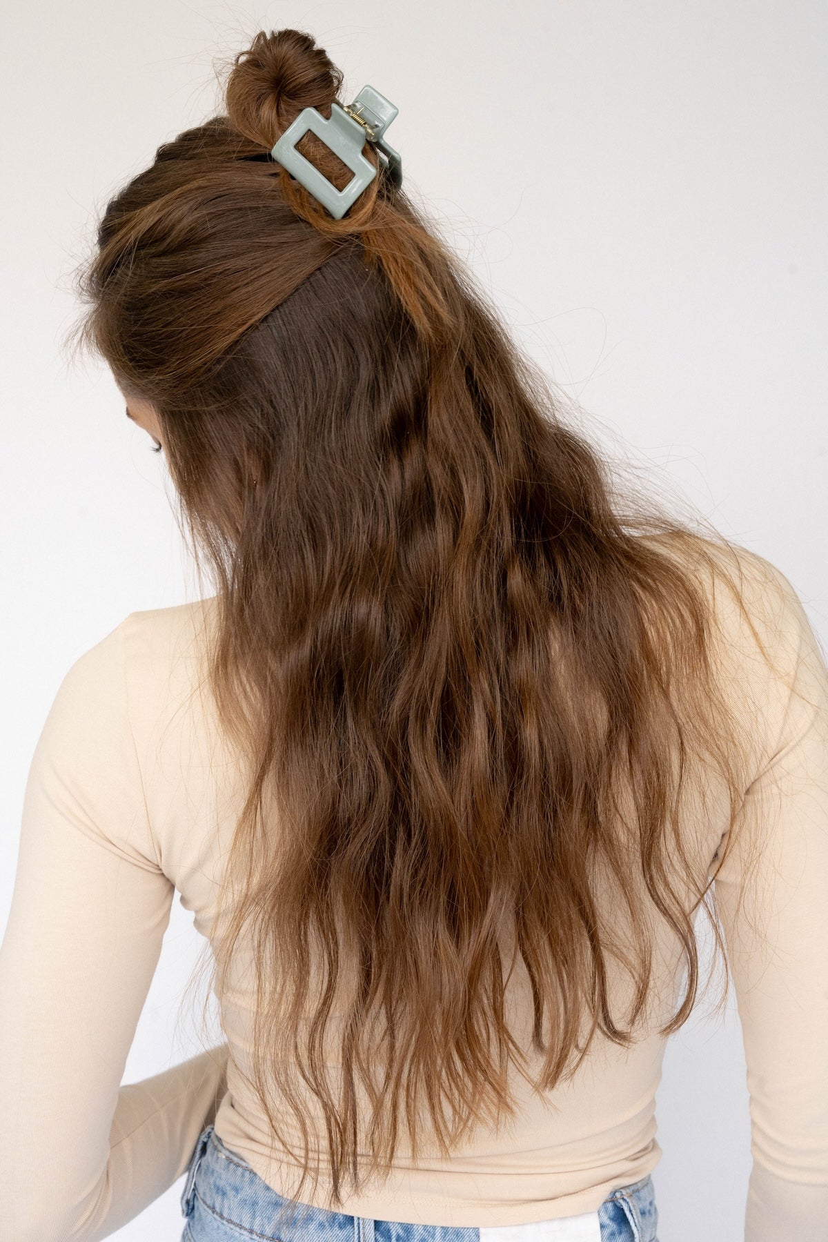 Square ist ein absoluter Allrounder für jeden Haartyp. Unserer kleinste Haarklammer ist ideal um einzelne Haare nach hinten zu stecken und sorgt dabei für ein schlichtes und elegantes Detail.