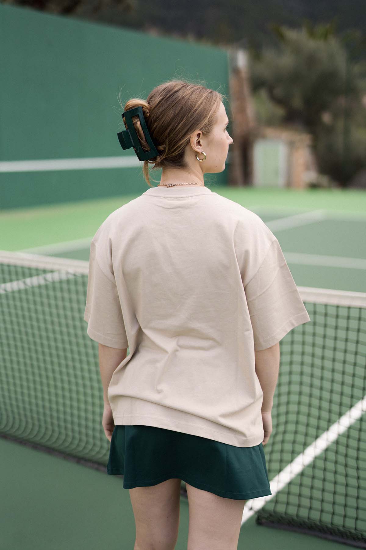 Unser Oversized T-Shirt aus 100 % Baumwolle überzeugt mit weichem Material und hohem Tragekomfort. Der Oversized Fit sorgt für einen entspannten Look und maximale Bewegungsfreiheit. Als Teil unserer Tennis Kollektion lässt sich das T-Shirt ideal mit unseren Tennis Skirts und unseren Tennis Dresses kombinieren und wird so zum vielseitigen Essential für Sport und Alltag.