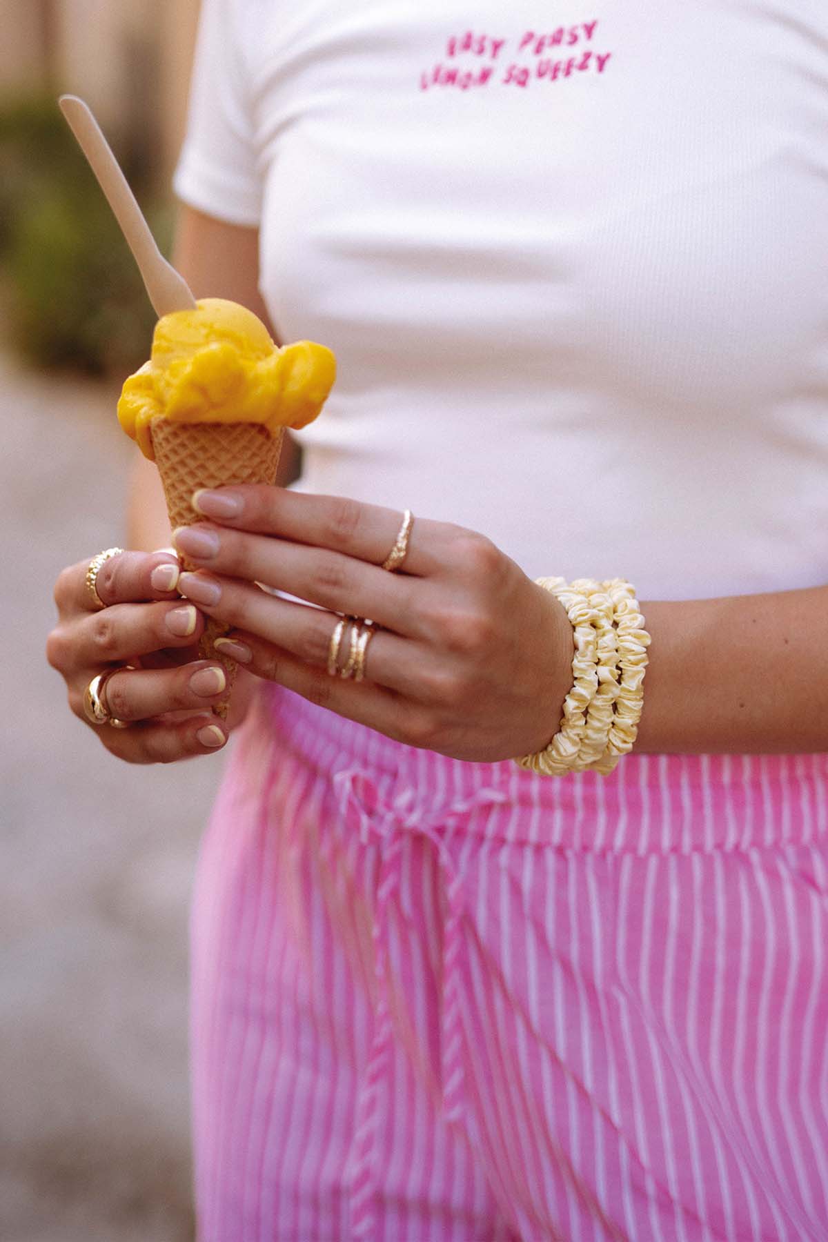 Die Scrunchies zerstören deine Haare nicht und sie weiten sich nach dem tragen auch nicht aus, sodass man sie auch immer am Handgelenk tragen kann .