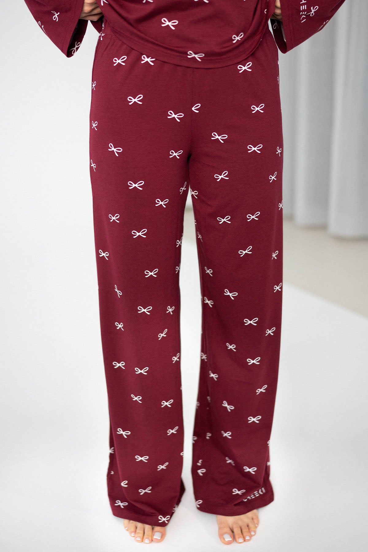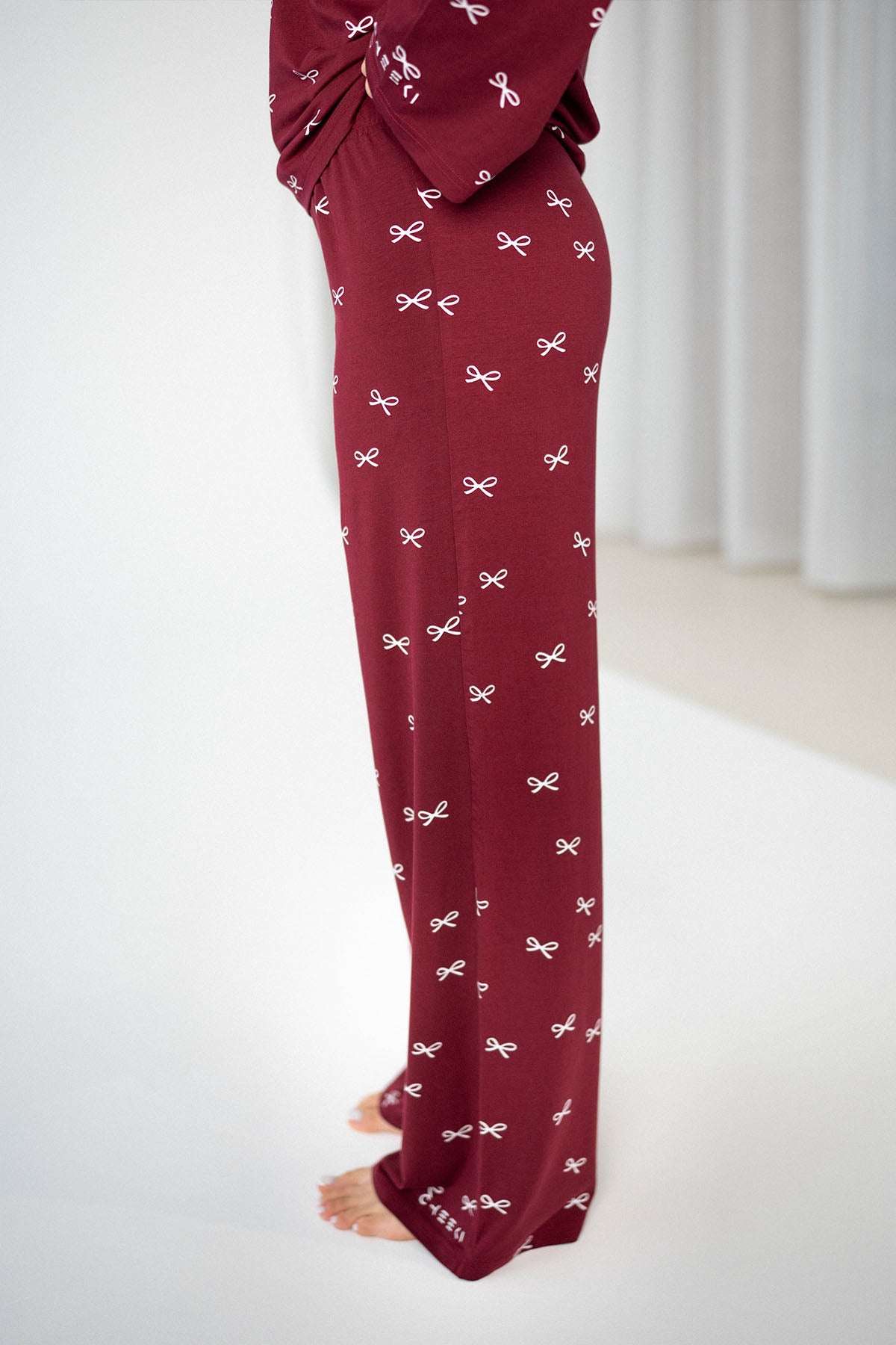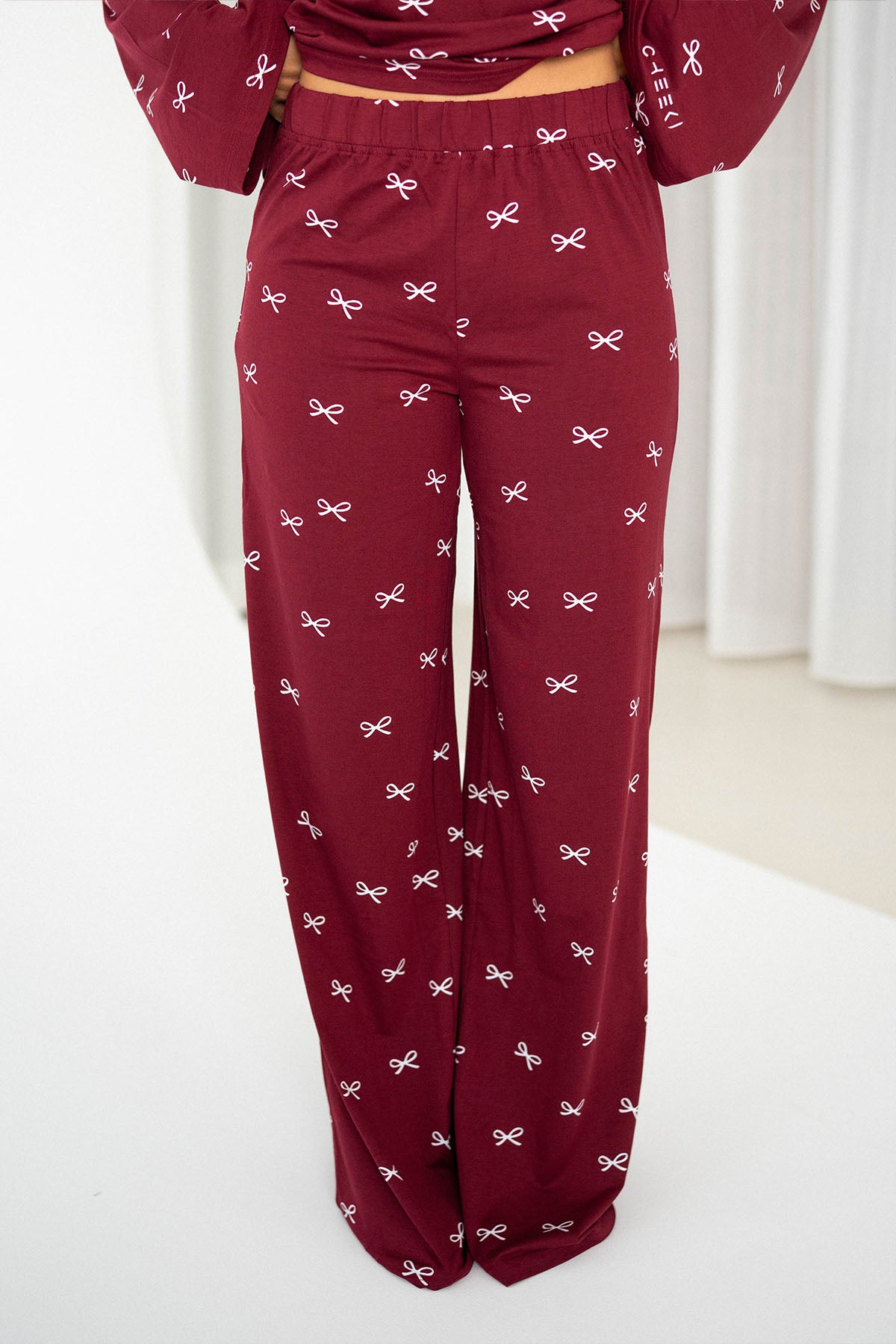 Unsere Bows Schlafhose ist der perfekte Begleiter für gemütliche Winterabende und entspannte Morgen. Das weiche, leichte Material sorgt für ein angenehmes Tragegefühl, während die lange Passform und der elastische Bund maximalen Komfort bieten. Die liebevollen Schleifendetails verleihen der Hose einen festlich-femininen Look.
