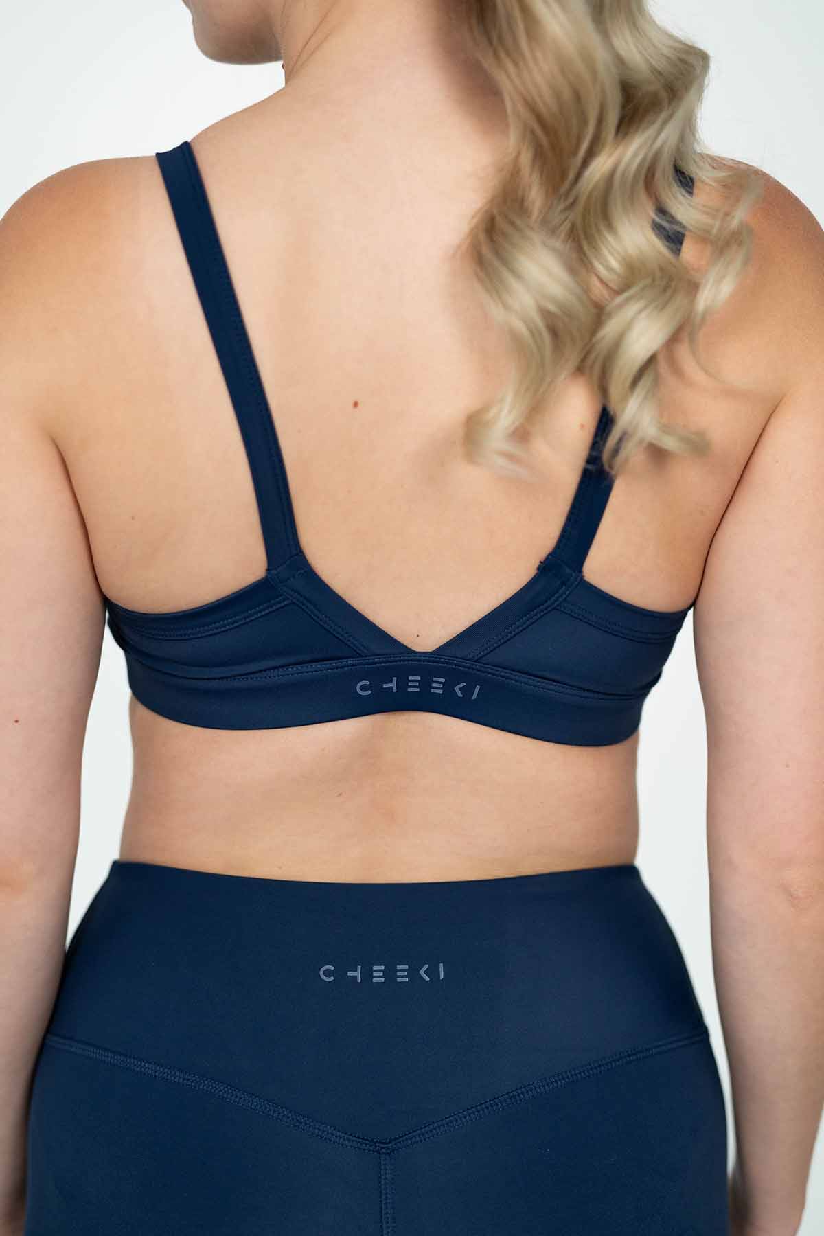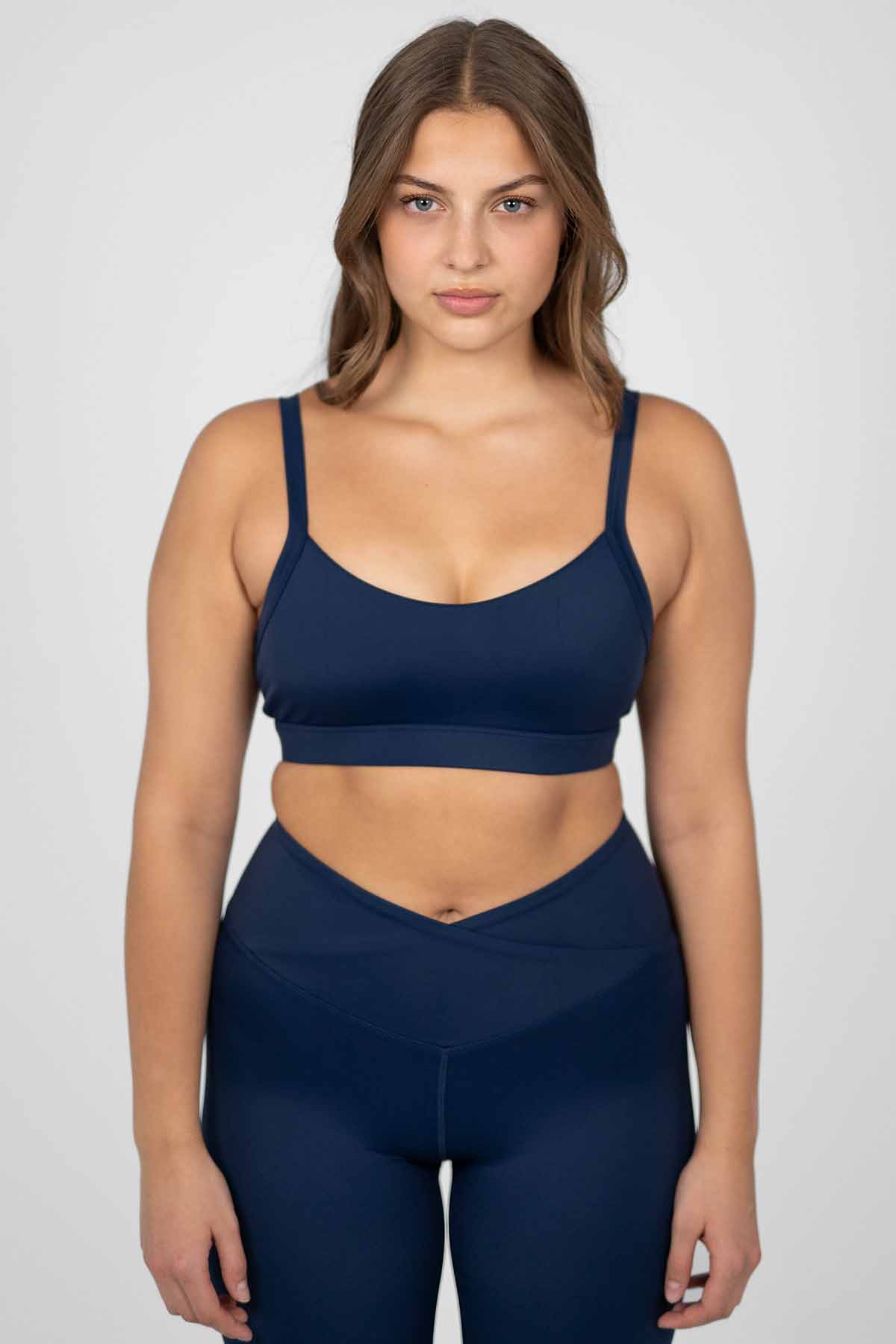 Sport Top ohne Padding mit schmalen Trägern, elastischem Bund und tiefem Rückenausschnitt. Hergestellt aus recyceltem Ozean Plastik.