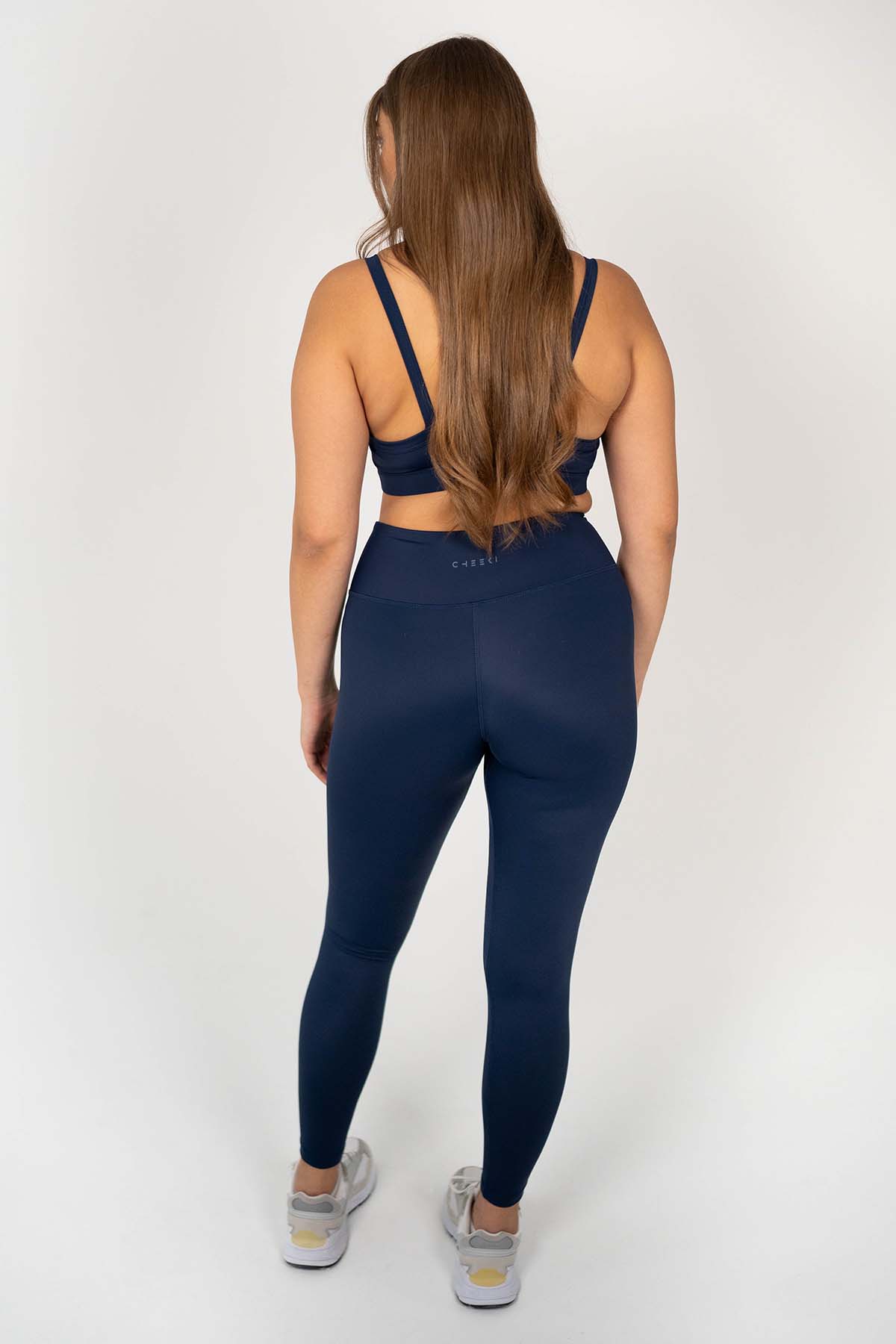 Sport Leggings mit überkreuztem Bund und Highwaisted Fit. Hergestellt aus recyceltem Ozean Plastik.