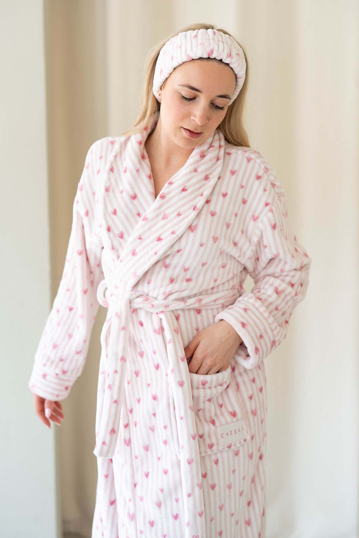 Unser Glam Haarband mit niedlichen Herz-Details ist das ideale Accessoire für entspannte Stunden zu Hause. Der weiche Stoff sorgt für angenehmen Tragekomfort und hält dein Haar zuverlässig zurück. Ein praktisches und stylisches Must-have für deine Beauty-Routine!