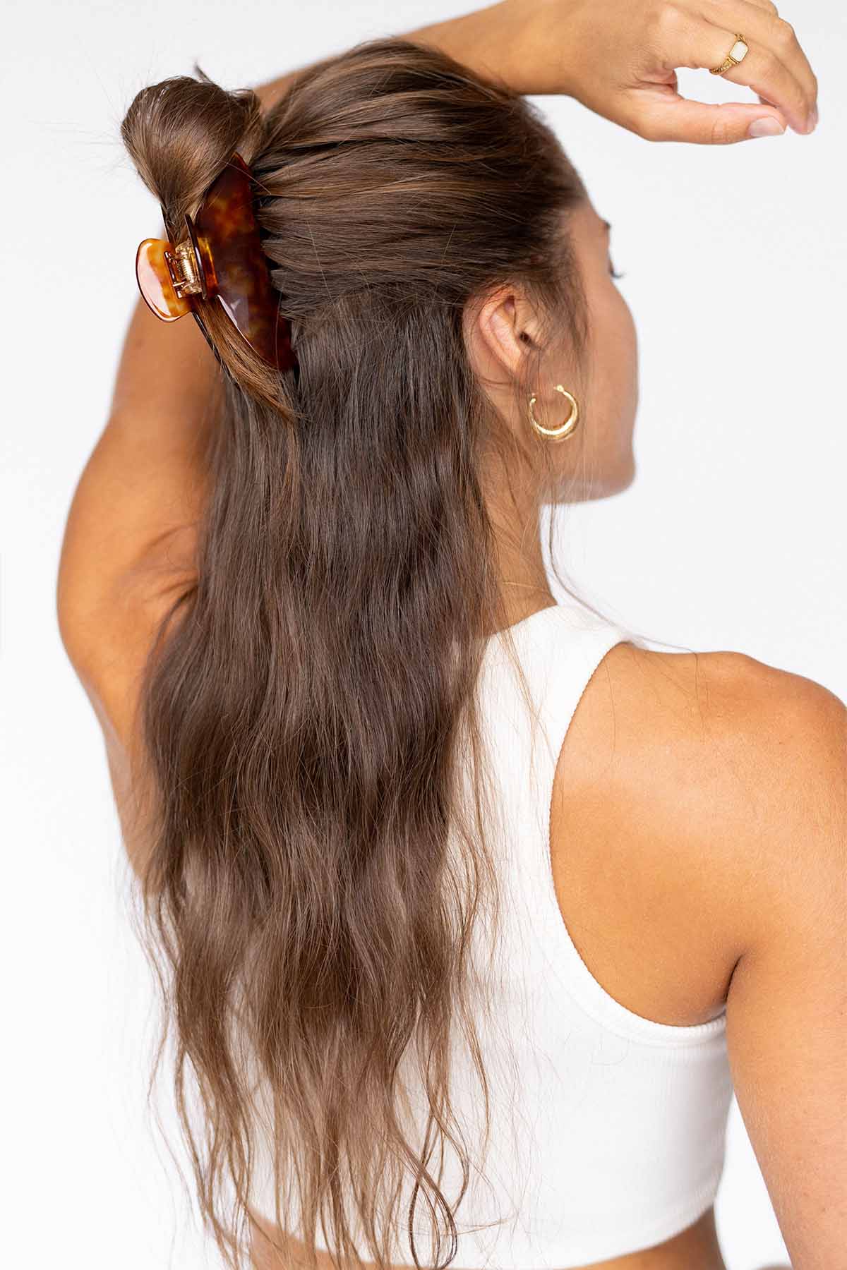 Unsere Moon Haarklammer Macchiato ist mit ihrer natürlich abgerundeten Silhouette ein absoluter Hingucker im Haar und gibt deinem Look ein edles Finish. Die Haarspange eignet sich je nach Haarlänge für halb offene Frisuren oder für eine Hochsteckfrisur.