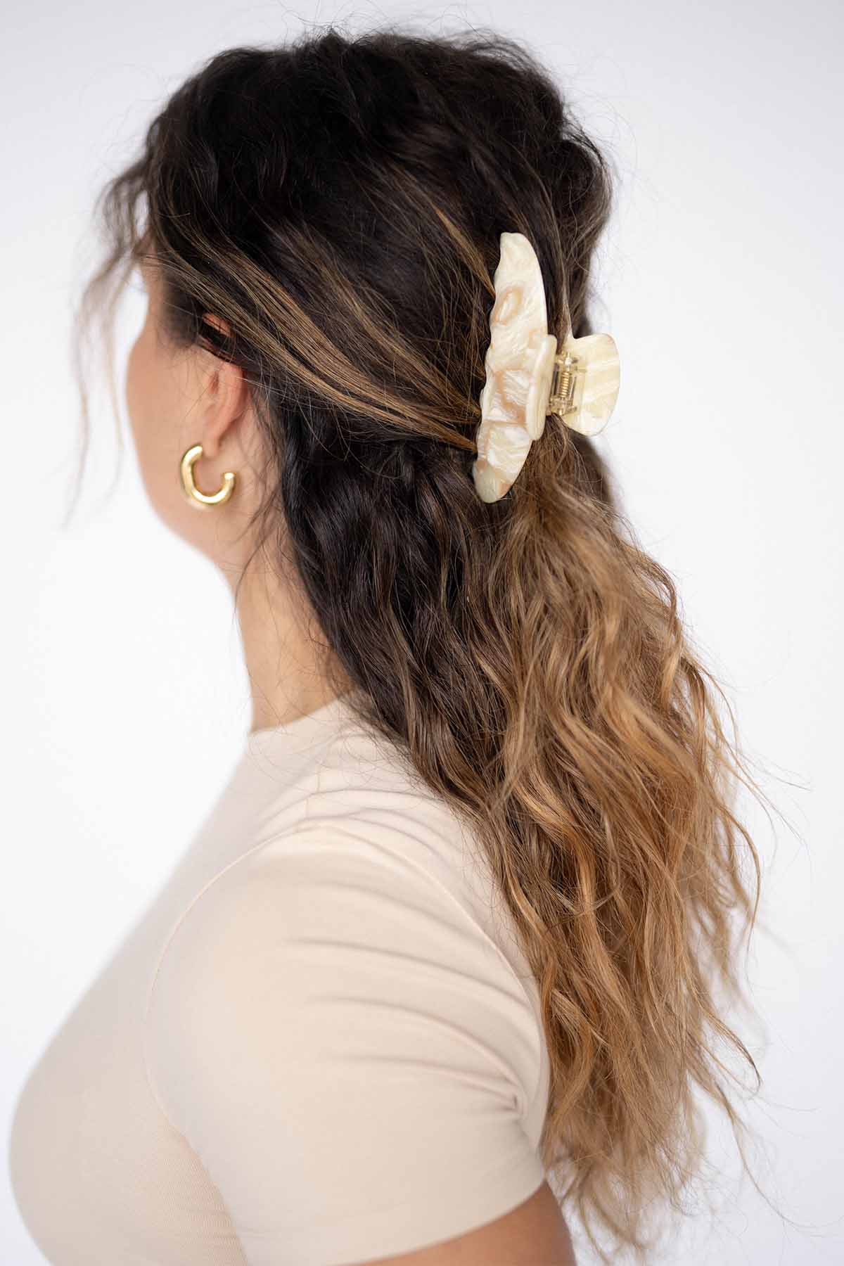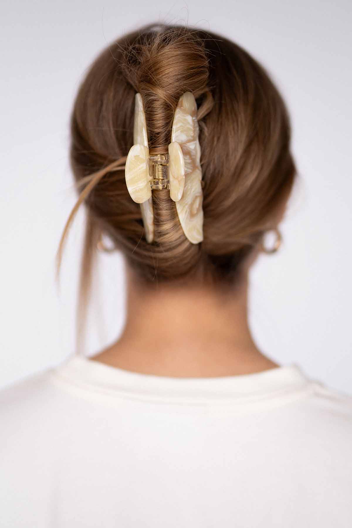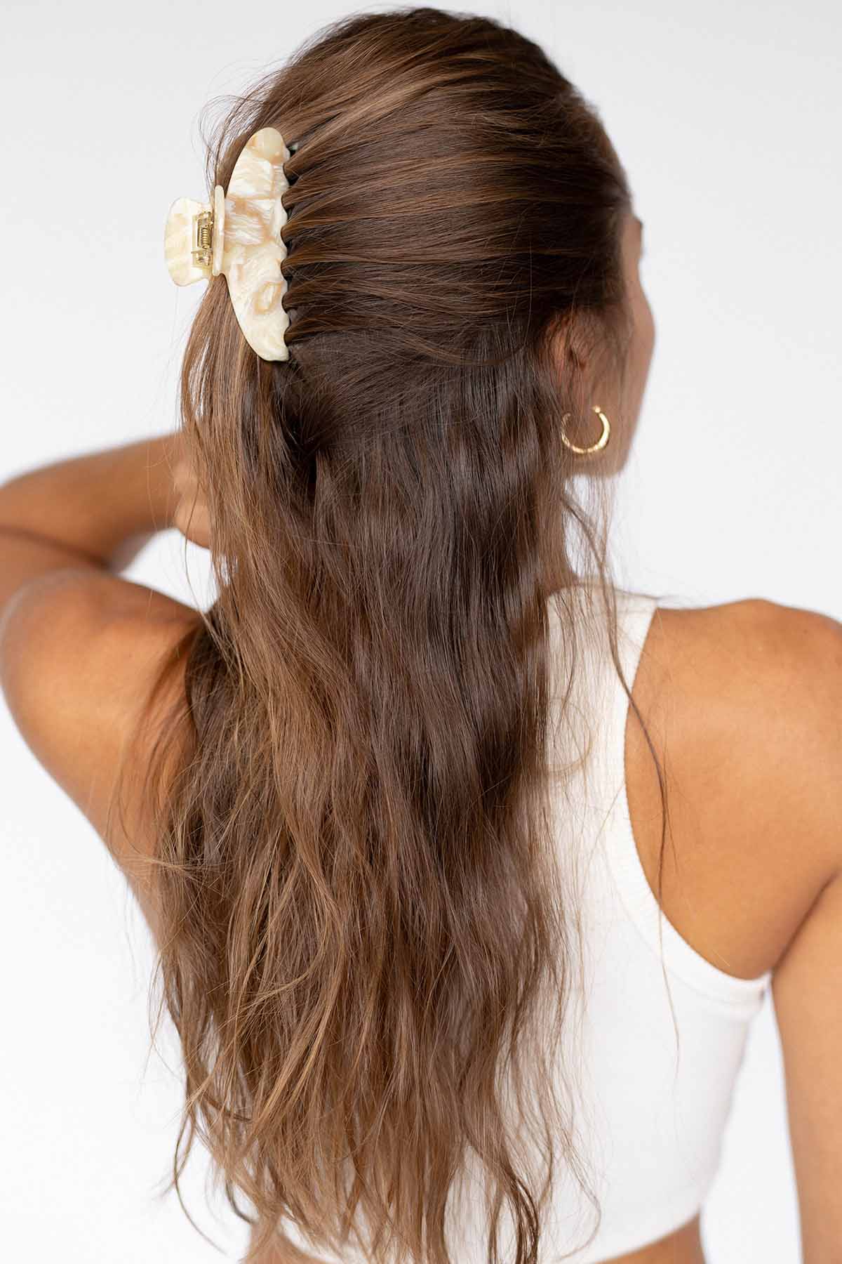 Unsere Moon Haarklammer Oak ist mit ihrer natürlich abgerundeten Silhouette ein absoluter Hingucker im Haar und gibt deinem Look ein edles Finish. Die Haarklammer eignet sich je nach Haarlänge für halb offene Frisuren oder für eine Hochsteckfrisur.