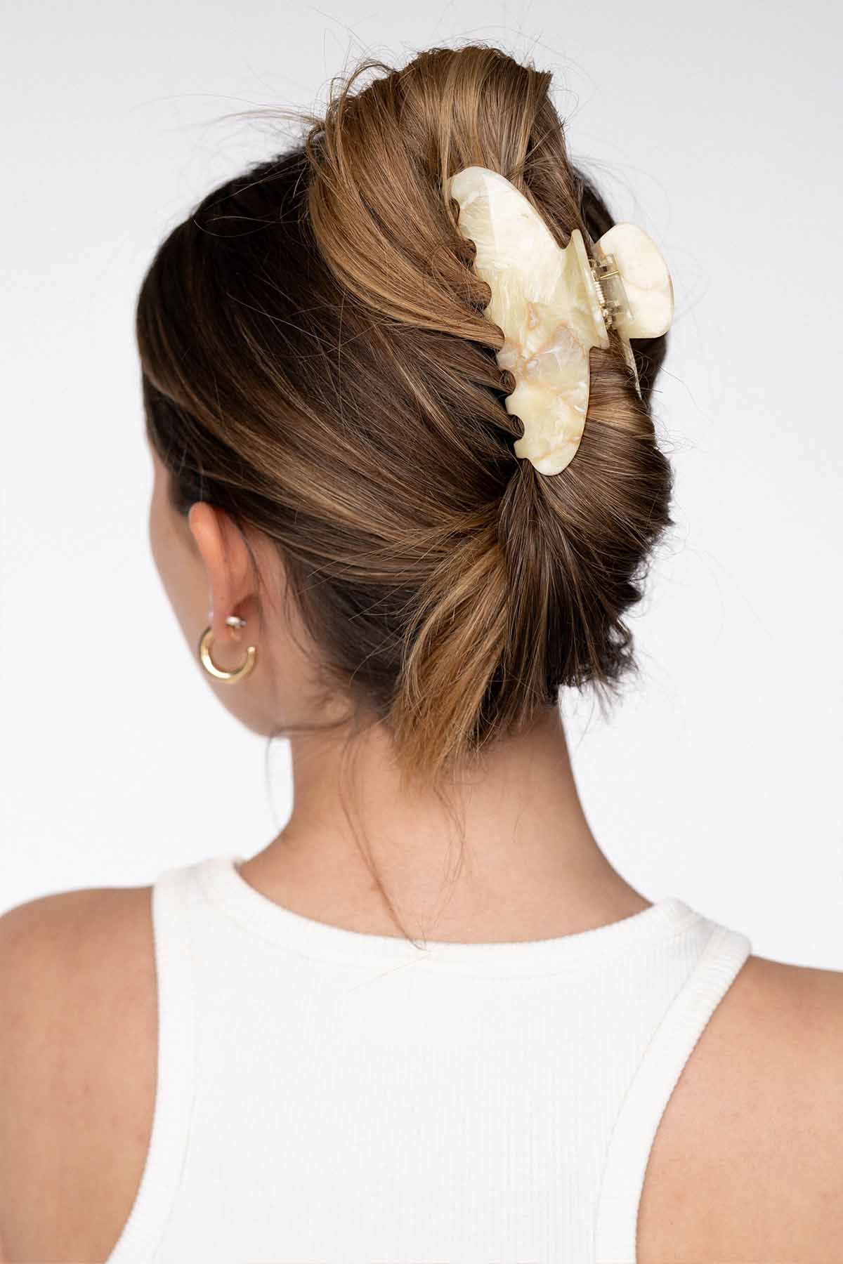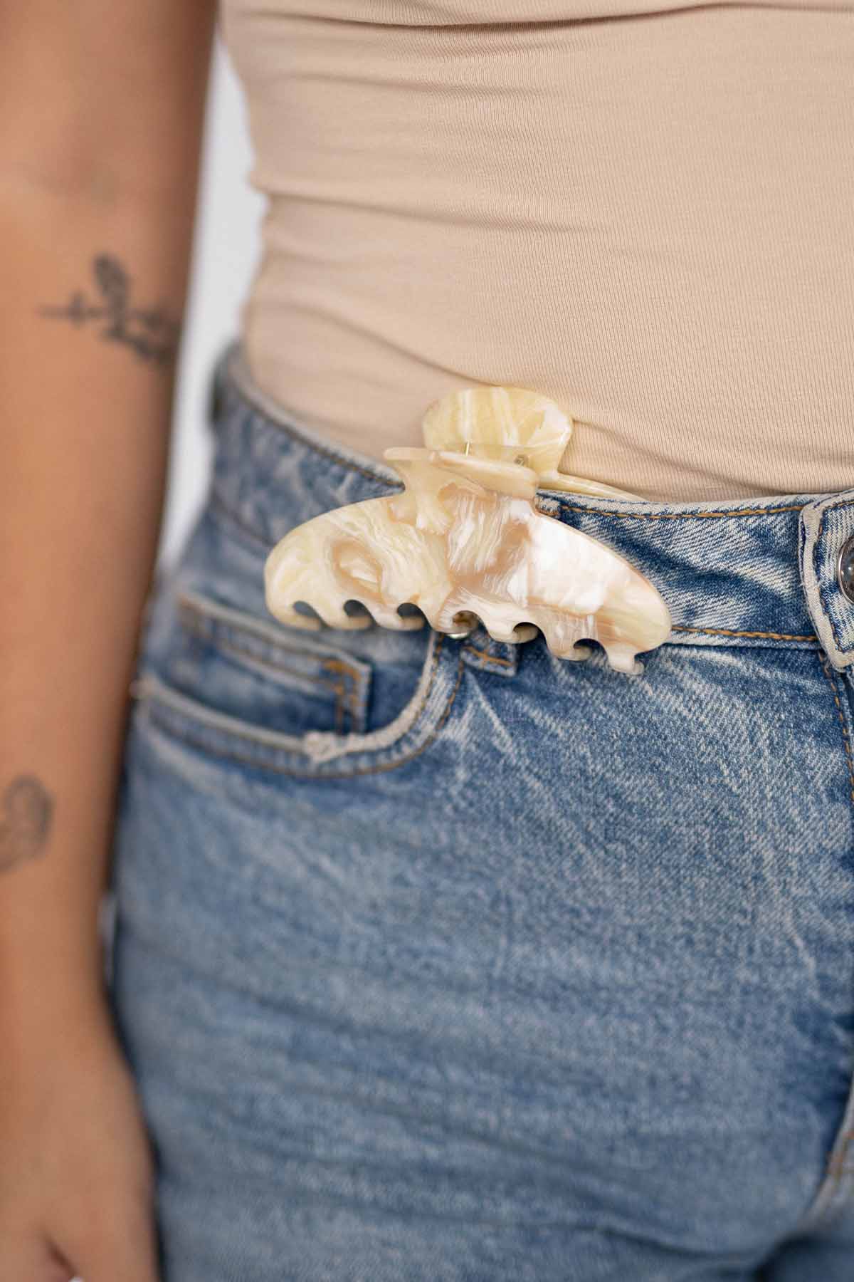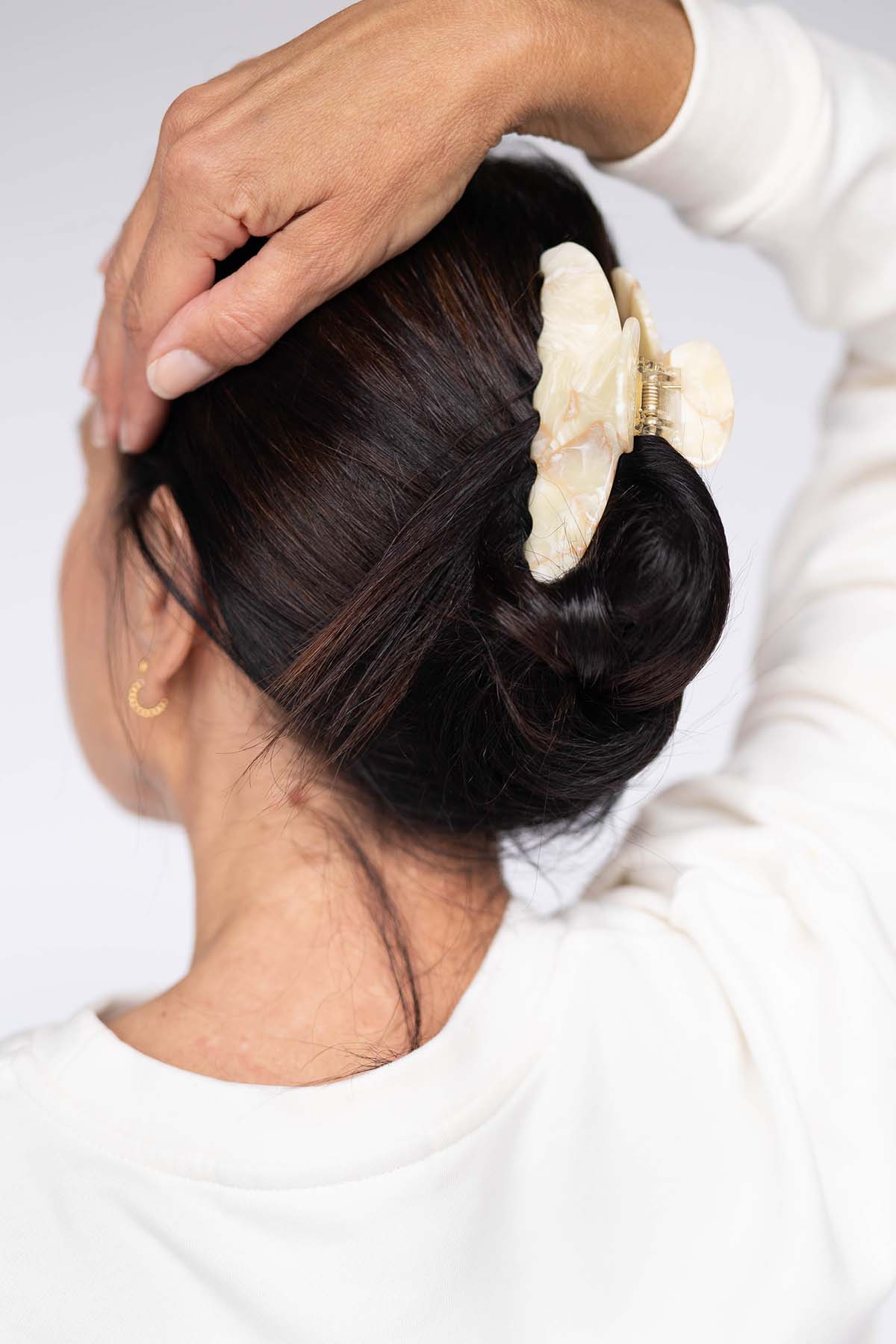 Unsere Moon Haarklammer Oak ist mit ihrer natürlich abgerundeten Silhouette ein absoluter Hingucker im Haar und gibt deinem Look ein edles Finish. Die Haarklammer eignet sich je nach Haarlänge für halb offene Frisuren oder für eine Hochsteckfrisur.