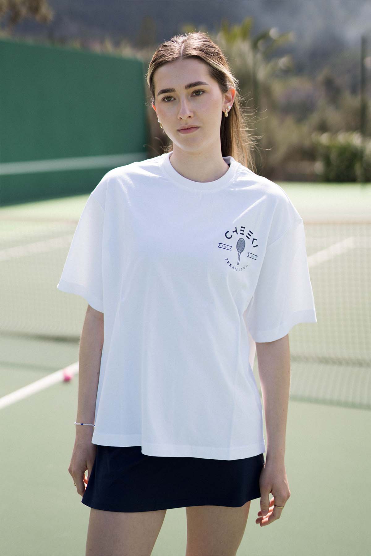 Unser Oversized T-Shirt aus 100 % Baumwolle überzeugt mit weichem Material und hohem Tragekomfort. Der Oversized Fit sorgt für einen entspannten Look und maximale Bewegungsfreiheit. Als Teil unserer Tennis Kollektion lässt sich das T-Shirt ideal mit unseren Tennis Skirts und unseren Tennis Dresses kombinieren und wird so zum vielseitigen Essential für Sport und Alltag.