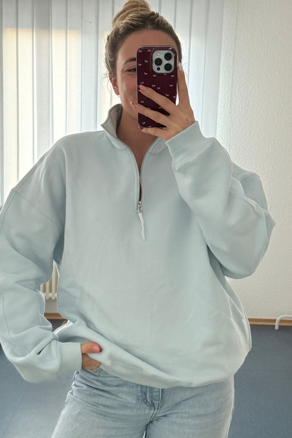 Der Quarter Zip Hoodie aus 100 % Baumwolle ist das ideale Basic für deine Capsule Wardrobe. Mit seinem oversized Fit bietet er maximalen Komfort und lässt sich mühelos in jeden deiner Looks integrieren – ein echtes Everyday-Piece.
