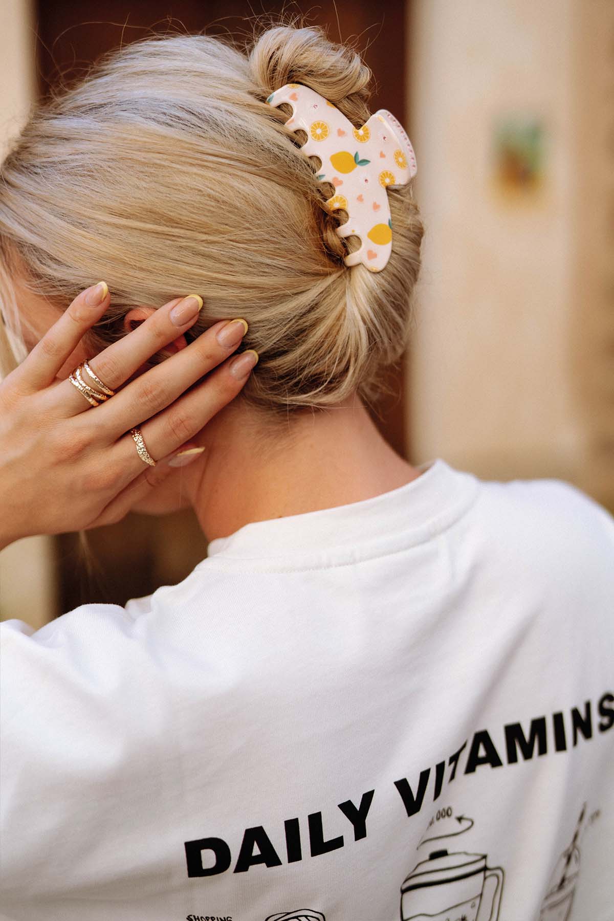Diese Haarklammer ist dein absolutes Must-Have für jeden Tag. Das eckige, minimalistische Design macht diese Haarspange zu dem perfekten Allrounder. Vom Low-Bun bis zur Hochsteckfrisur, rundet diese Haarklammer deinen Look mit einem edlen Detail perfekt ab.