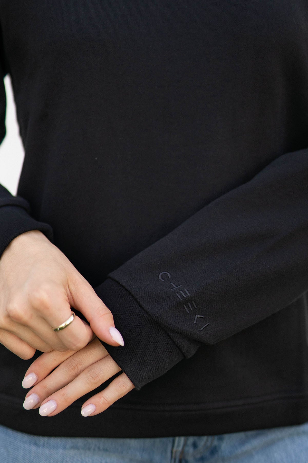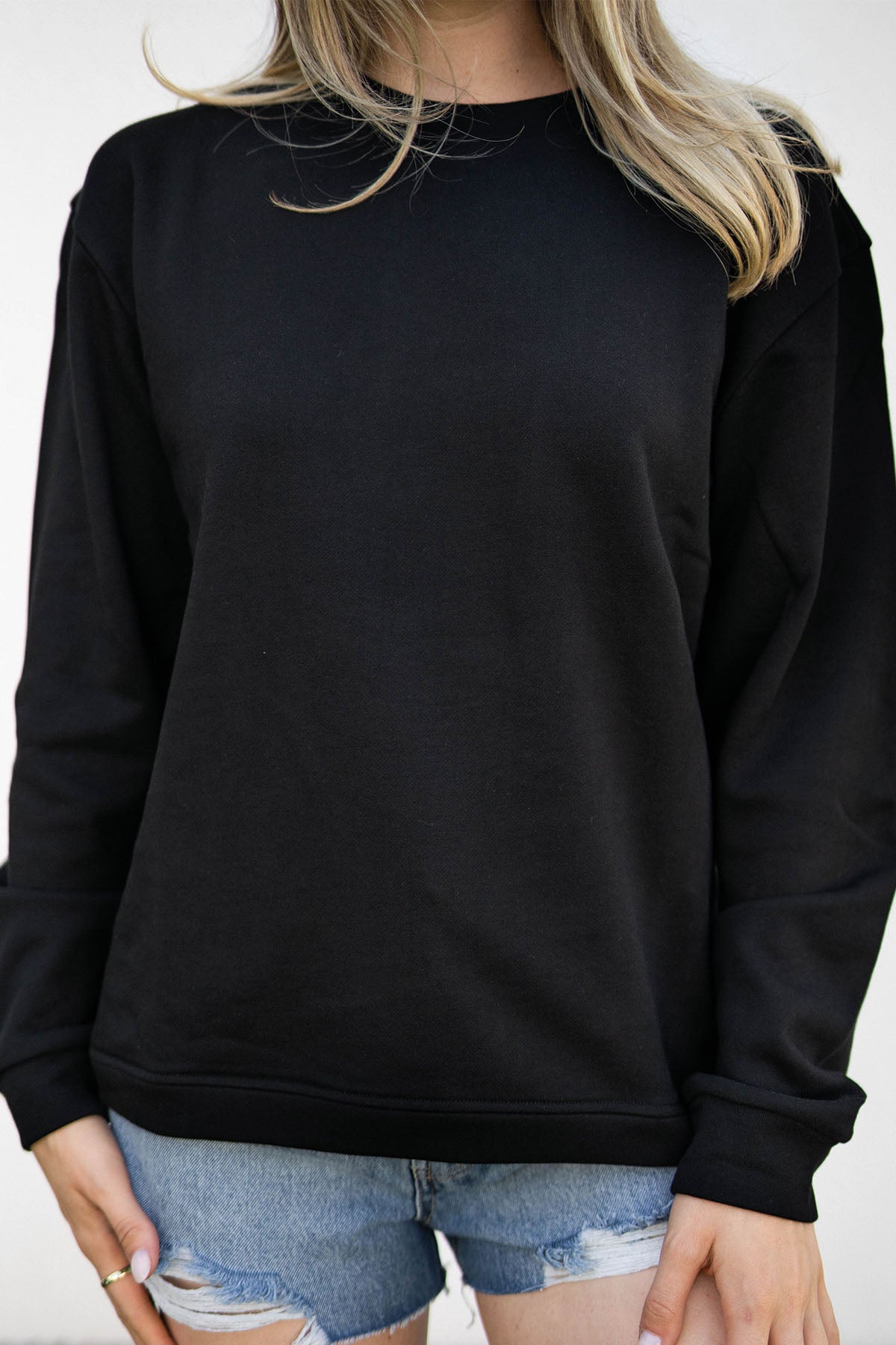 Unser Oversize Sweatshirt in schwarz ist ein vielseitiges Basic für deine Capsule Wardrobe. Das Sweatshirt besteht aus 100 Prozent Bio-Baumwolle und hat einen runden Halsausschnitt.