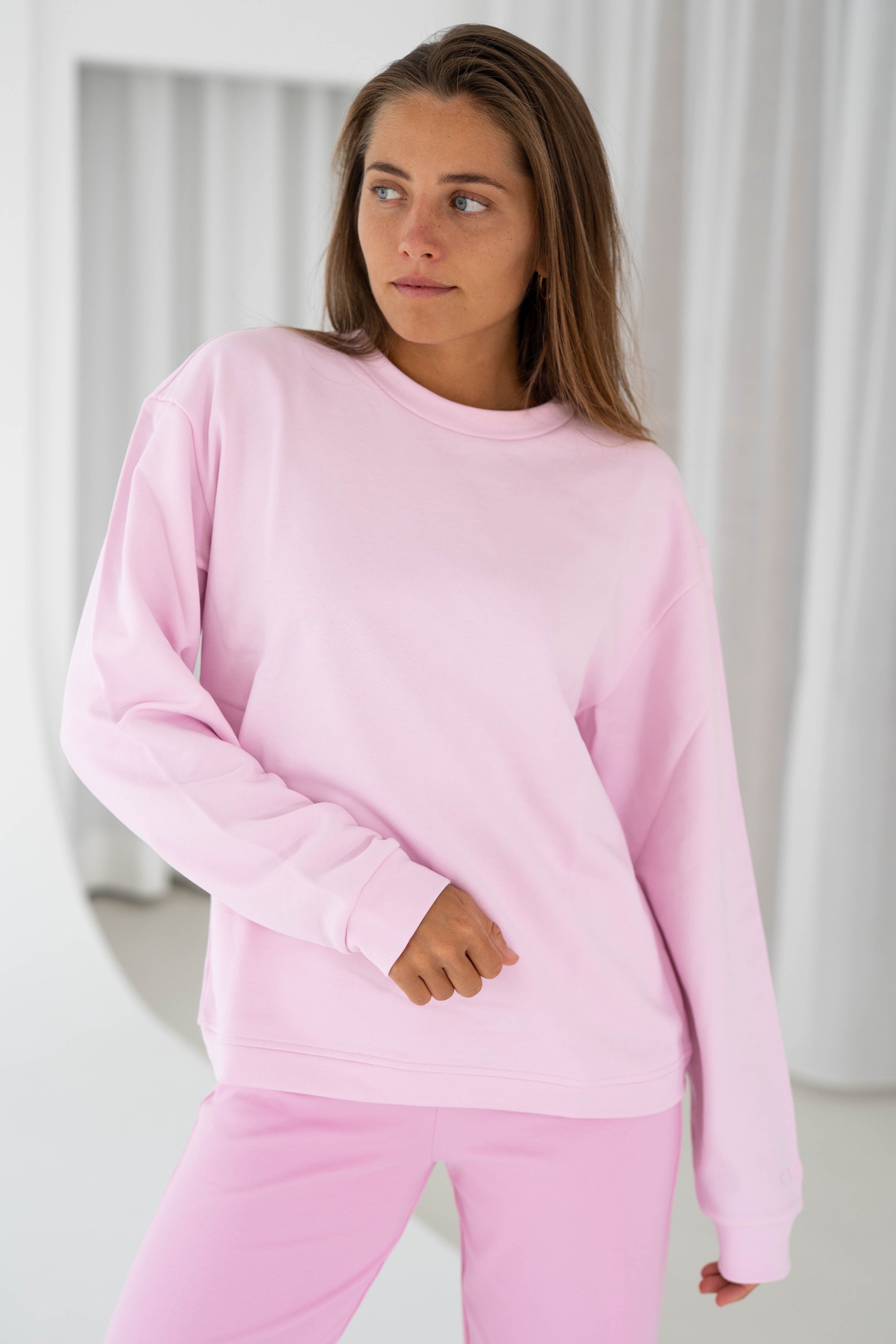 Unser Sweatshirt in Light Pink ist ein vielseitiges Basic für deine Capsule Wardrobe. Das Sweatshirt besteht aus 100 Prozent Baumwolle und hat einen runden Halsausschnitt.