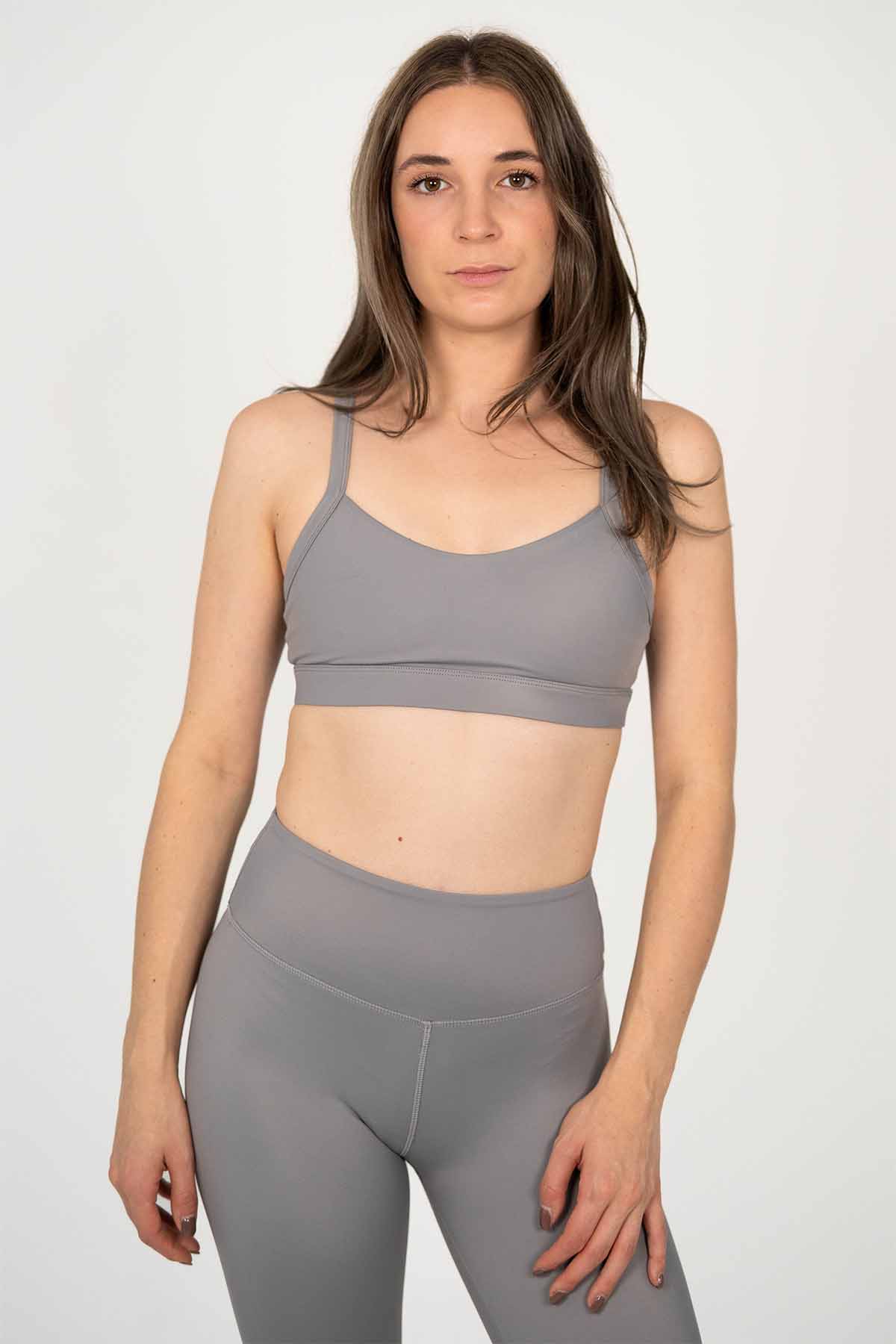 Sport Top ohne Padding mit schmalen Trägern, elastischem Bund und tiefem Rückenausschnitt. Hergestellt aus recyceltem Ozean Plastik.