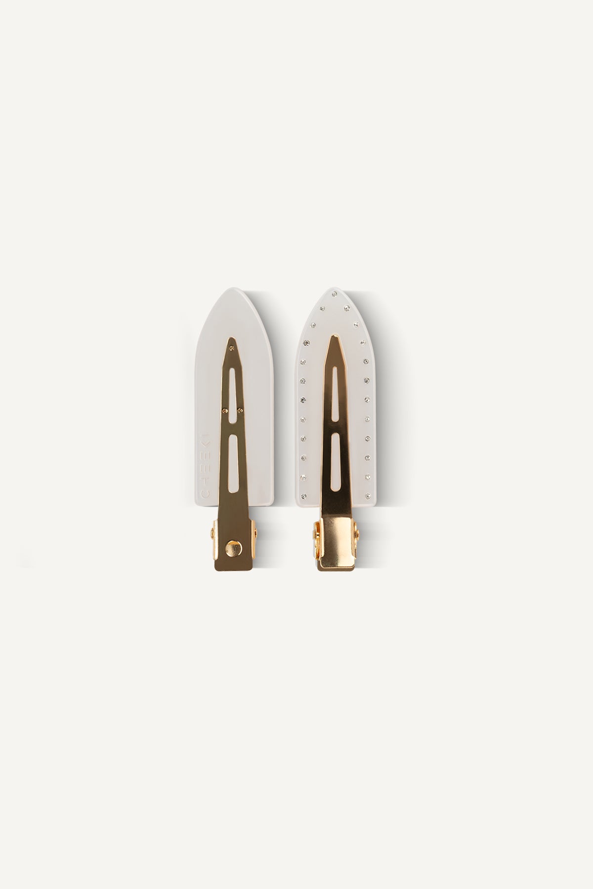 Die ausgewählten Haaraccessoires in edlem Weiß ergänzen jedes Brautstyling.