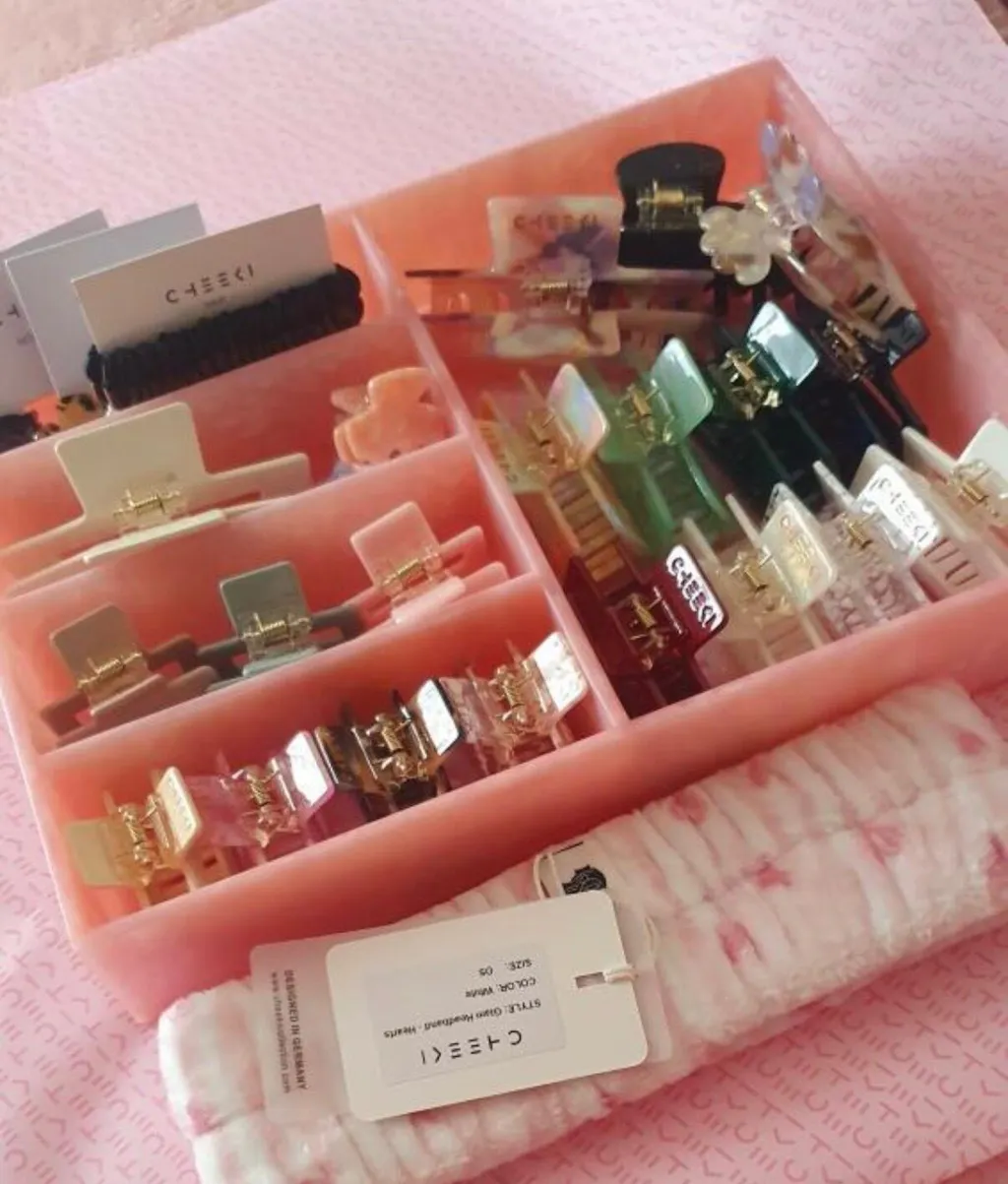 Endlich ist sie da! Unsere erste Aufbewahrungsbox für deine Haar Accessoires! Mit diesem stylischen Vanity Tray kannst du all deine Haarklammern ordentlich und elegant aufbewahren. Egal, ob du deine gesamte Haarklammersammlung organisieren oder nur deine Lieblingsstücke griffbereit haben möchtest – dieses Tray ist ein...