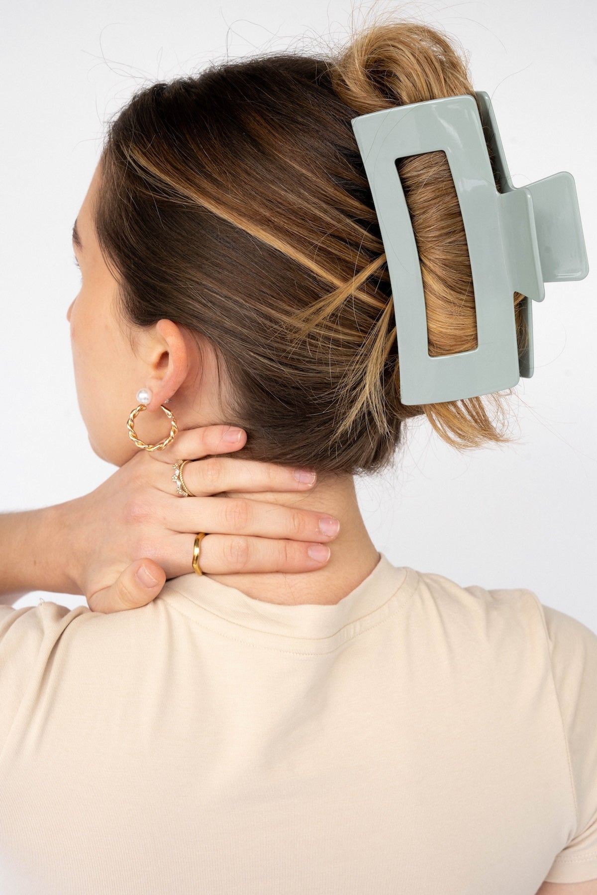 Diese Haarklammer ist dein absolutes Must-Have für jeden Tag. Das eckige, minimalistische Design macht diese Haarspange zu dem perfekten Allrounder. Vom Low-Bun bis zur Hochsteckfrisur, rundet diese Haarklammer deinen Look mit einem edlen Detail perfekt ab.
