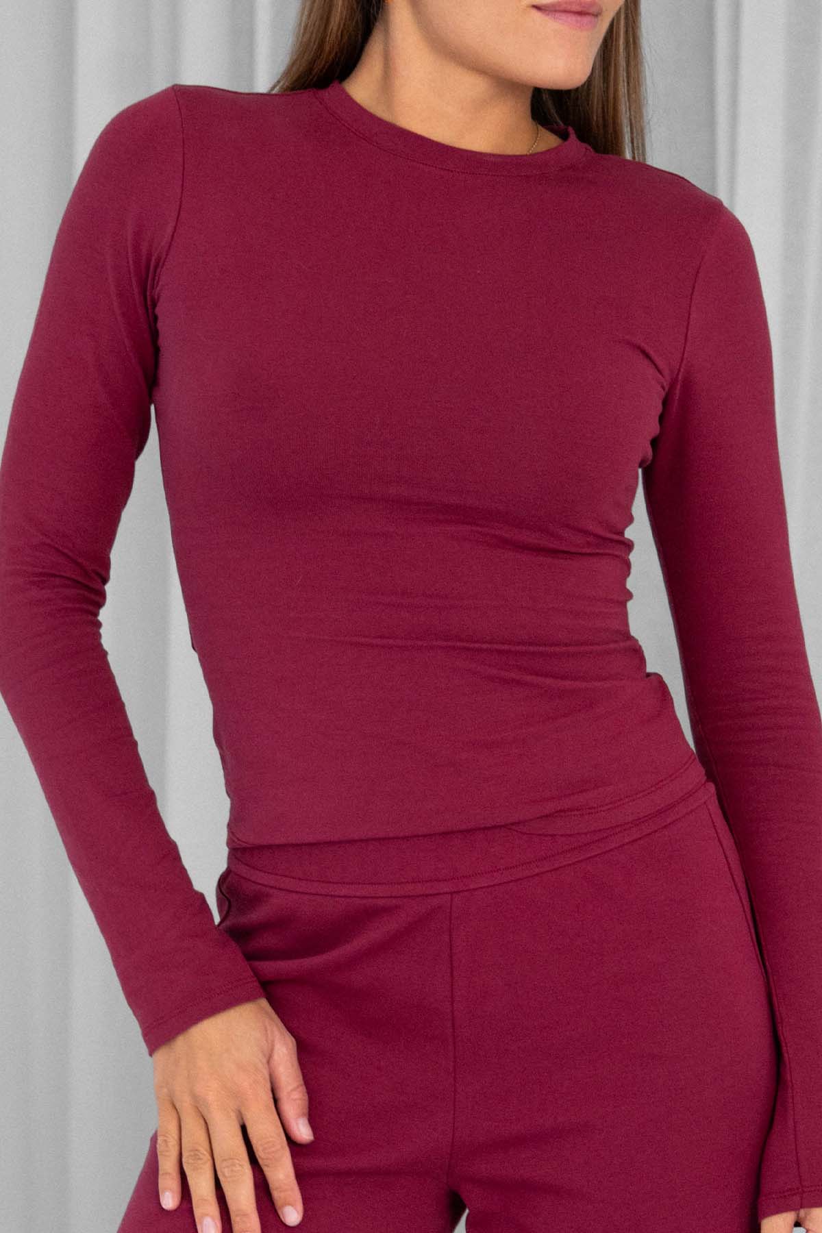 Unser Long Sleeve T-Shirt in Plum mit rundem Halsausschnitt ist das perfekte Basic Oberteil für deine Capsule Wardrobe, das Style und Komfort vereint. Mit einem hohen Anteil an Baumwolle bietet das Long Sleeve T-Shirt ein angenehmes Tragegefühl.