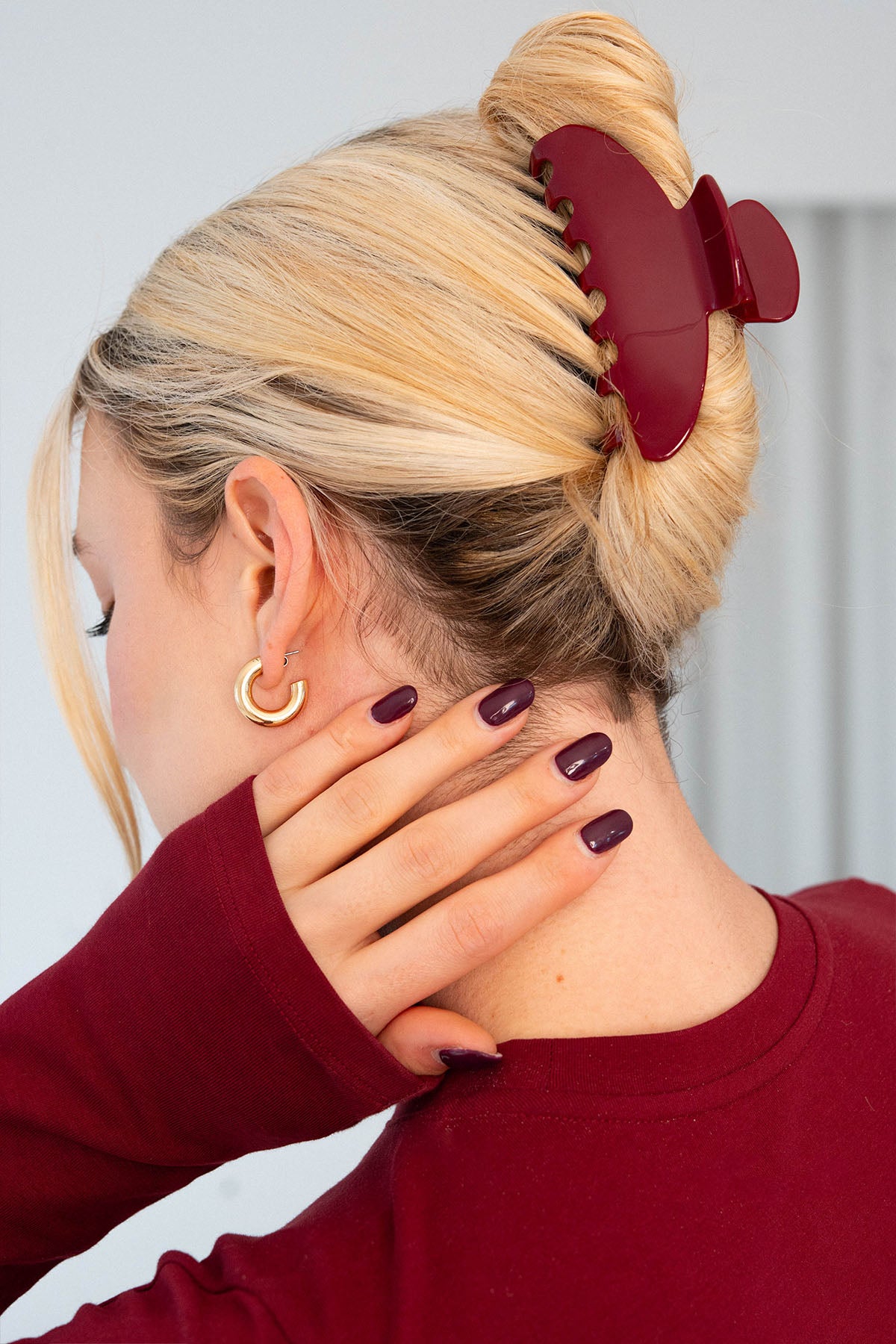 Unsere Moon Haarklammer Santa Red ist mit ihrer natürlich abgerundeten Silhouette ein absoluter Hingucker im Haar und gibt deinem Look ein edles Finish. Die Haarklammer eignet sich je nach Haarlänge für halb offene Frisuren oder für eine Hochsteckfrisur.